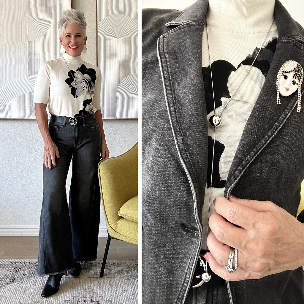1. THE BLACK DENIM JEANS AND BLAZER COMBO: Sophisticated and elevated. If there’s one look I can’t get enough of, it’s this classic combination of these BLACK DENIM JEANS and BLAZER. I’m so excited about these wide-leg frayed hem jeans. They are so similar to a very high-end pair I just bought for over $250! Styled with the black blazer, this combo creates a super polished look. The blazer adds such sophistication, and clearly elevates a simple denim outfit to a whole new level. Indeed, perfect for date nights, lunch with friends, or even a business-casual setting! ABSOLUTELY ADORE these!