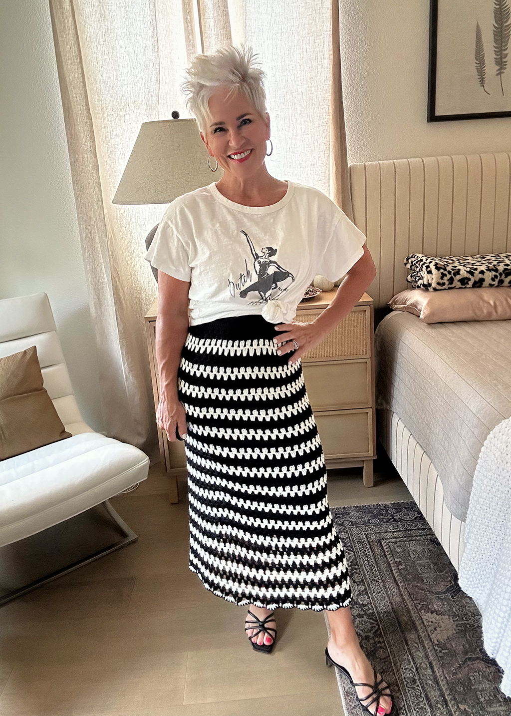 For me, crochet brings to mind my grandmother, who every year would crochet each of her grandchildren new slippers for Christmas. Before she passed, I was one of the lucky ones to get one of the beautiful blankets she made. Have you noticed that it’s making a stylish comeback when it comes to fashion? I’ve seen it everywhere in stores and online! Let’s talk about how to rock this trend at midlife with grace and sophistication.